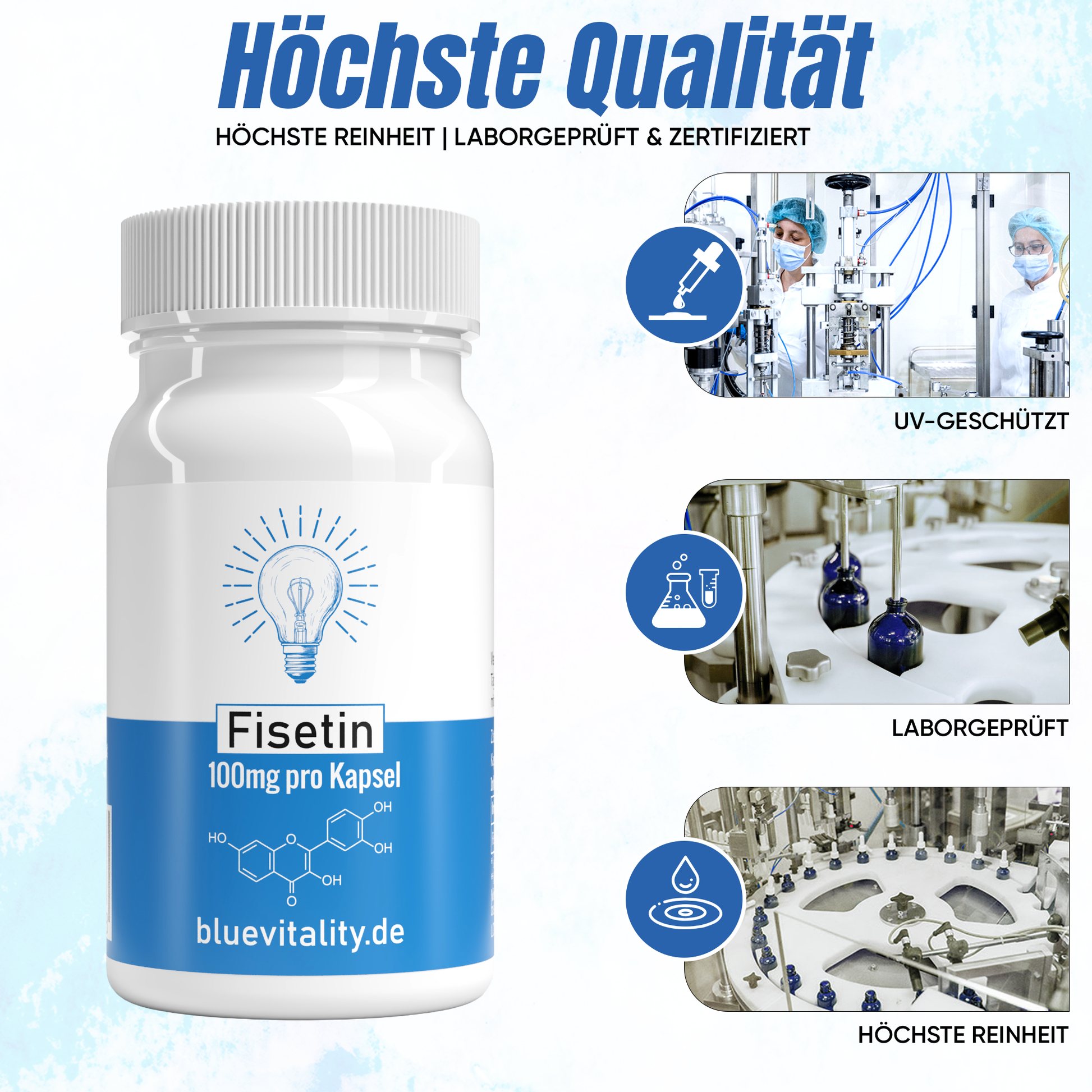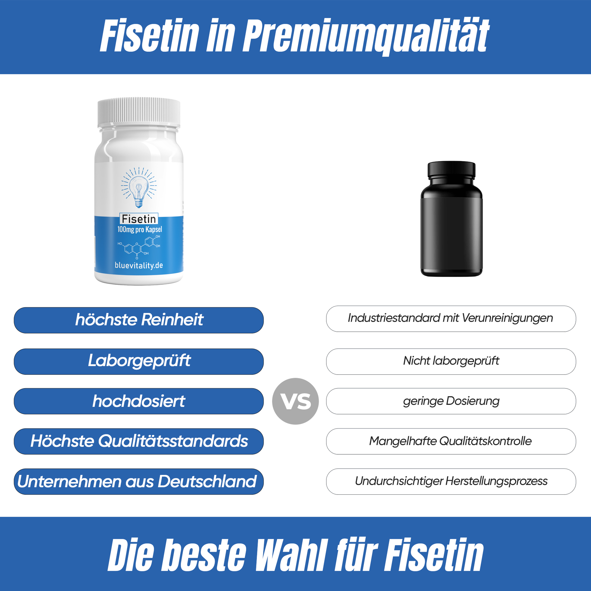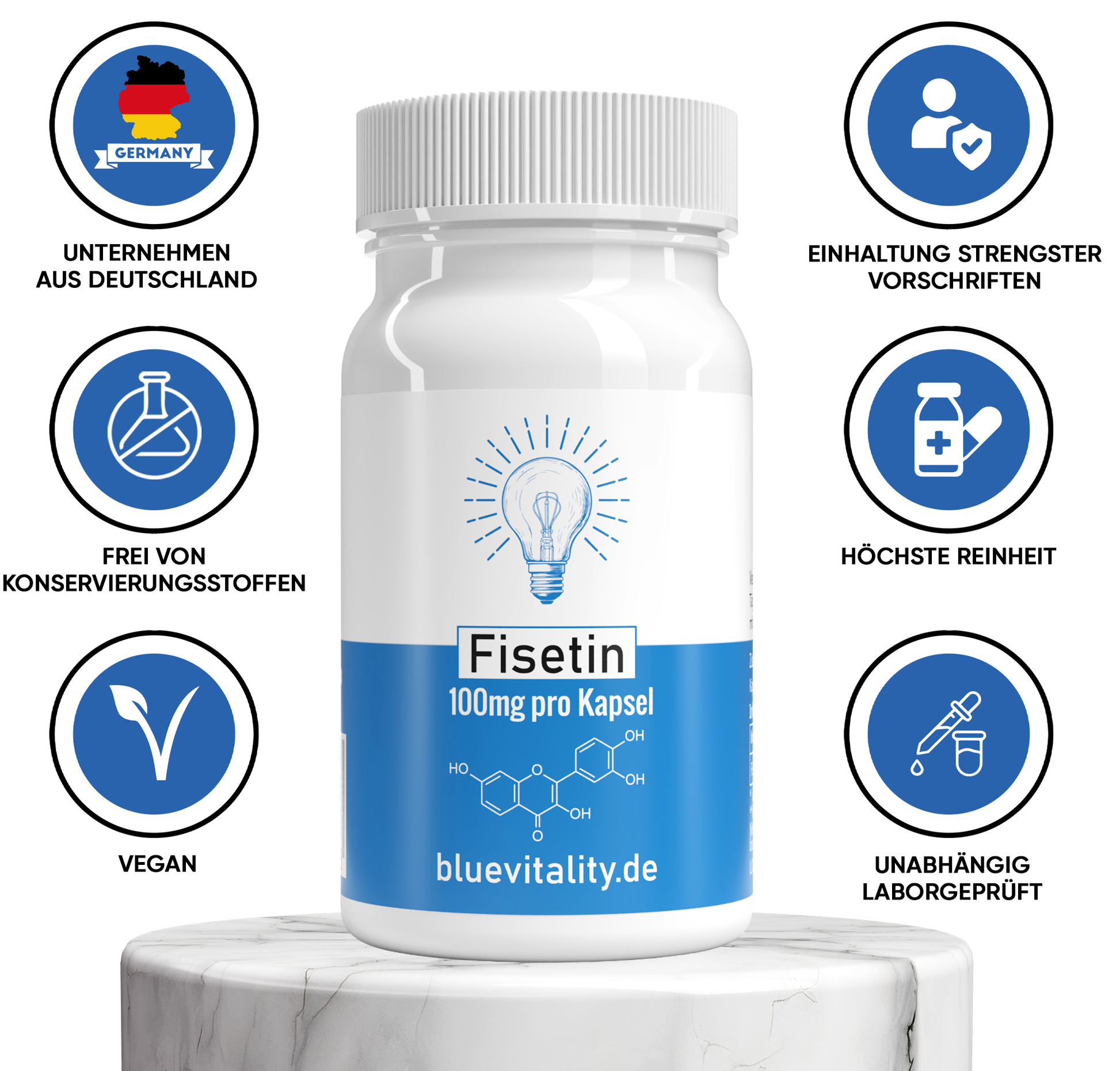 BlueVitality | Fisetin | 200mg Fisetin pro Tagesdosis | 60 Kapseln | Unabhängig laborgeprüft & zertifiziert