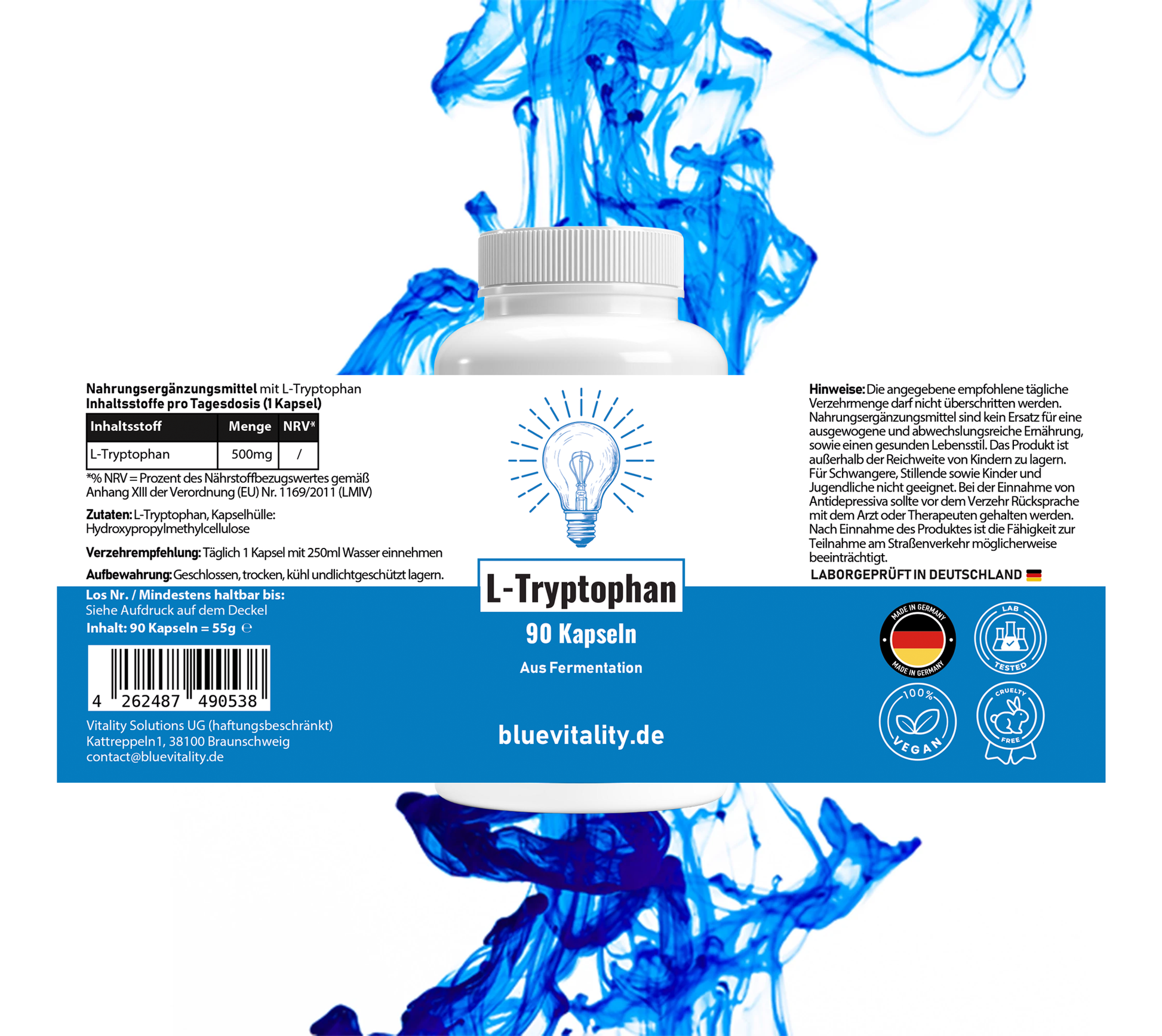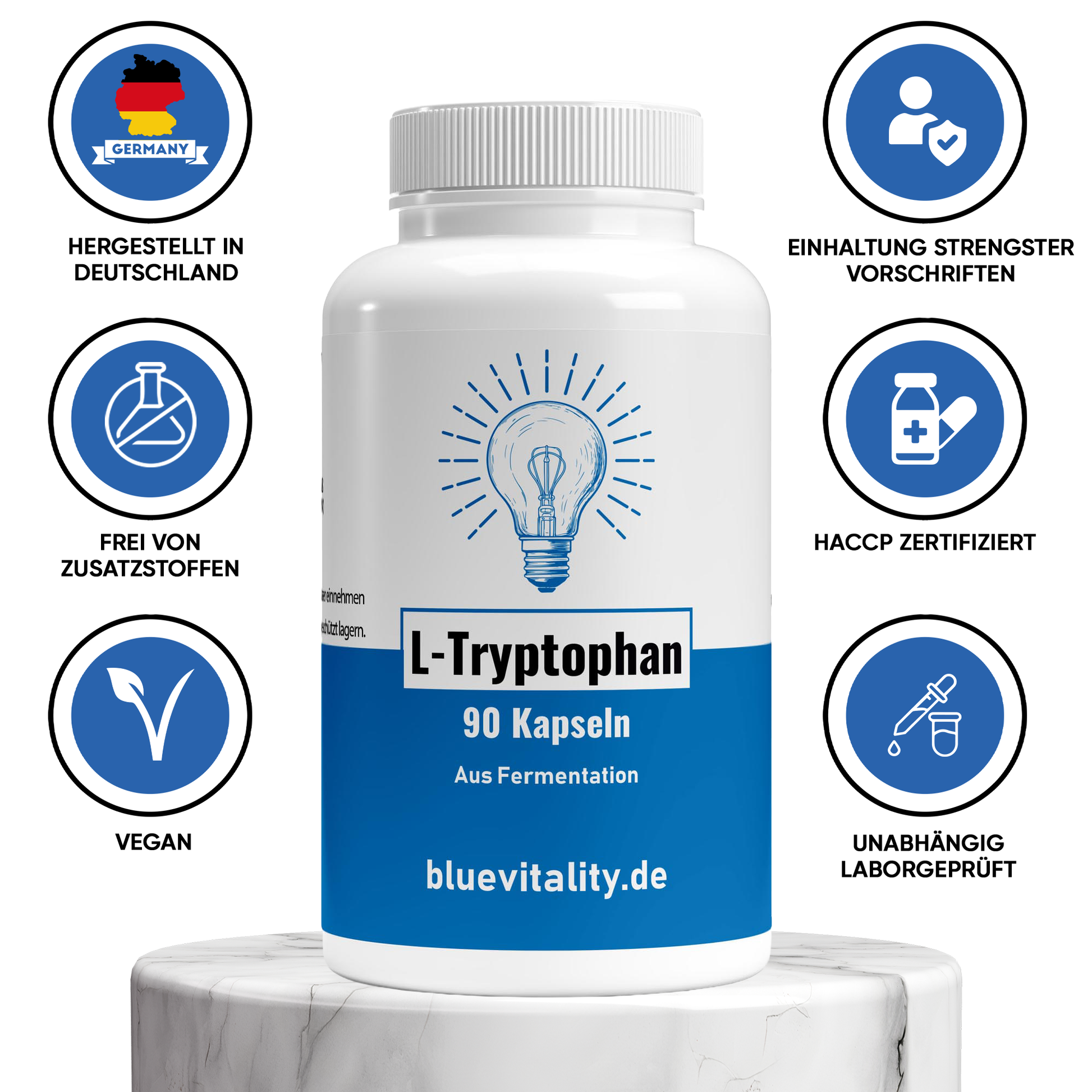 BlueVitality L-Tryptophan – essenzielle Aminosäure für Serotonin & Schlafregulation
